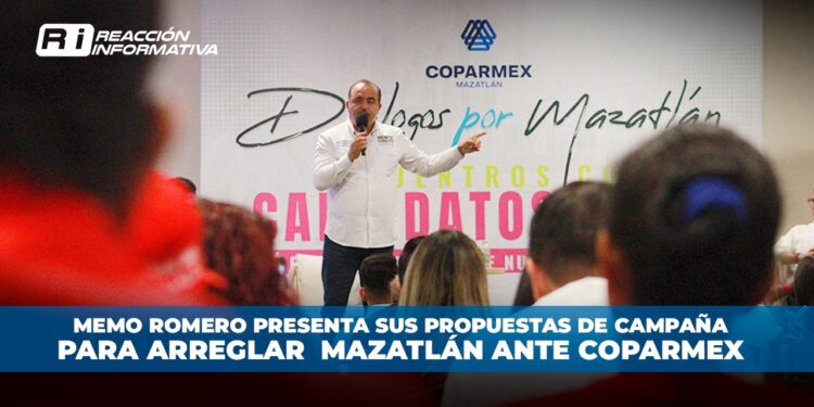 Mazatlán, Sin (Reacción Informativa).- Memo Romero, candidato a la alcaldía de Mazatlán por la Coalición Fuerza y Corazón por Sinaloa, reafirmó su compromiso de trabajar en representación de todos los mazatlecos, durante un diálogo con la Confederación Patronal de la República Mexicana (COPARMEX).
