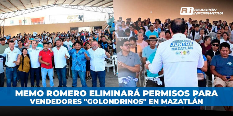 Mazatlán.- Memo Romero, anunció su compromiso de eliminar los permisos para los vendedores “Golondrinos” una vez que asuma la presidencia municipal, esto lo dio a conocer en una reunión llevada a cabo este martes con los vendedores de playa de Mazatlán.