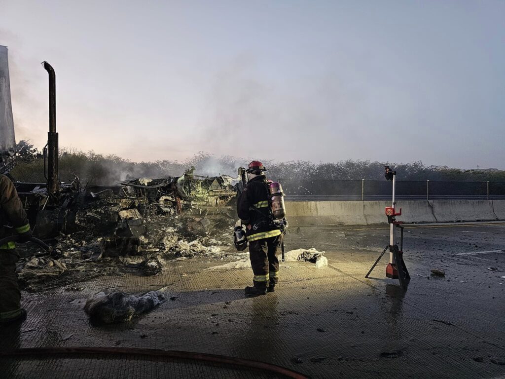 El incendio fue controlado alrededor de las 6:30, lo que permitió despejar un carril y que fluyera la circulación donde ya se había formado una larga fila de camiones de carga y tráilers que finalmente pudieron avanzar.