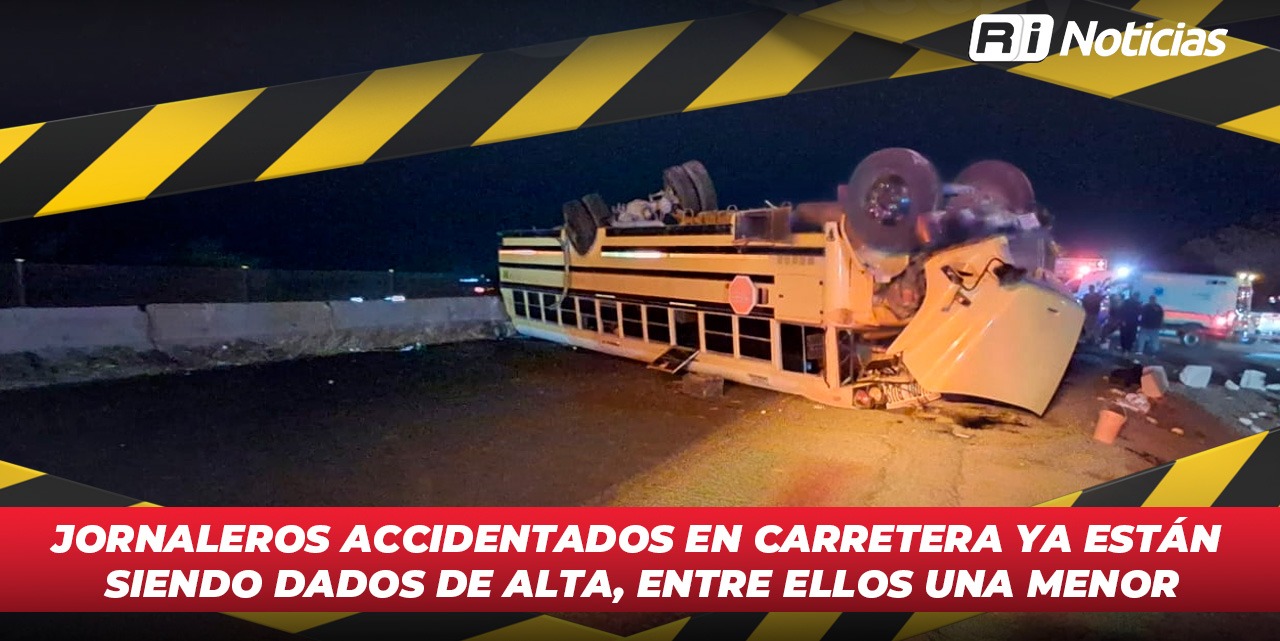 “Comentarles que el día de ayer se atendió el incidente de una volcadura de un camión de jornaleros, alrededor de 50 iban en esta unidad, de estos fueron atendidos seis pacientes, tres pacientes fueron atendidos en el Hospital General de los Mochis, los cuales están fuera de peligro, se encuentren bien y en el hospital del IMSS Guasave fueron atendidos otros tres pacientes, estos ya fueron dados de alta también el día de hoy y dentro de estos, solamente hay un paciente que tiene 11 años, pero que fue dado de alta, una mujer”.