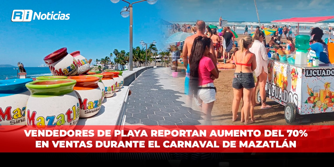 Mazatlán, Sin (RI Noticias).- El Carnaval Internacional de Mazatlán 2025 trajo consigo un importante repunte en las ventas para los vendedores de playa, quienes reportaron un incremento del 70% en su actividad comercial durante el fin de semana.