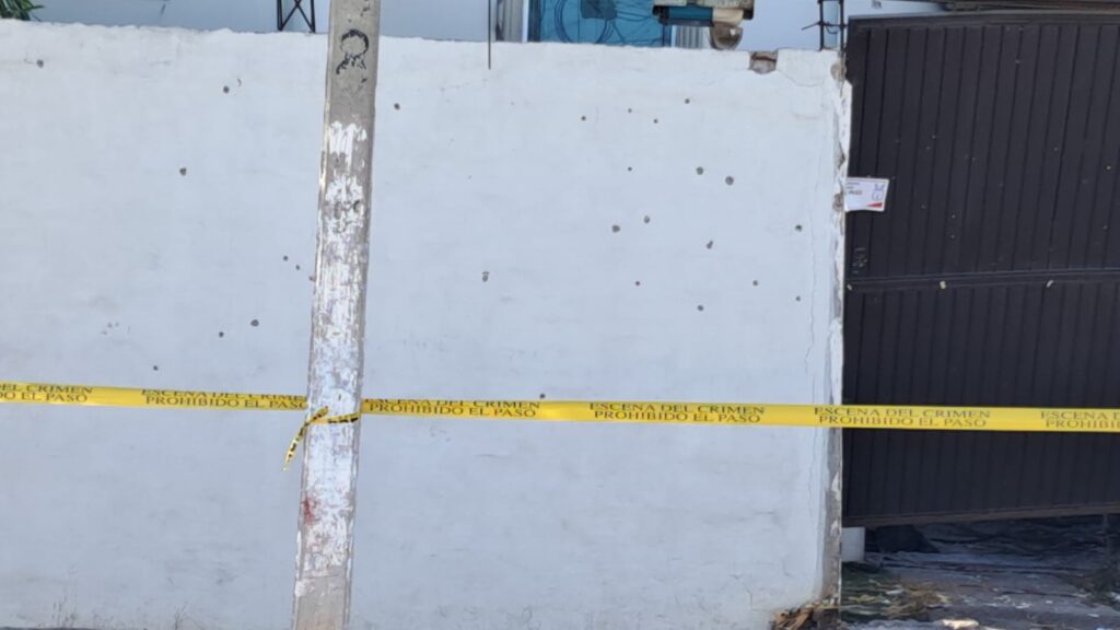 Tras un recorrido por la zona, se aprecian los daños en las viviendas, impactos de bala en las fachadas y rastros de incendio. Frente a los domicilios se observan rastros de sangre donde ayer ocurrió el enfrentamiento que dejó a una persona sin vida, dos extranjeros heridos, un joven lesionado por quemaduras y el aseguramiento de dos camionetas y explosivos.